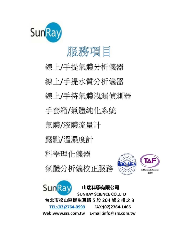 參展產品:氣體分析儀器、水質分析儀器、氣體洩漏偵測儀器、氣體/液體流量計、露點/溫濕度計、科學理化儀器、TAF氣體分析儀校正服務