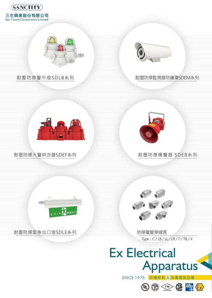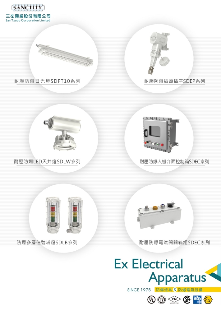 三左擁有完善設備及雄厚的技術實力和工程施工管理經驗並生產高規格的防爆電氣產品以及結構性耐壓防爆商品(防爆燈具,隔爆裝置,消防設備)的能力,提供全方位的工業防爆解決方案,為業界領先的標竿公司。